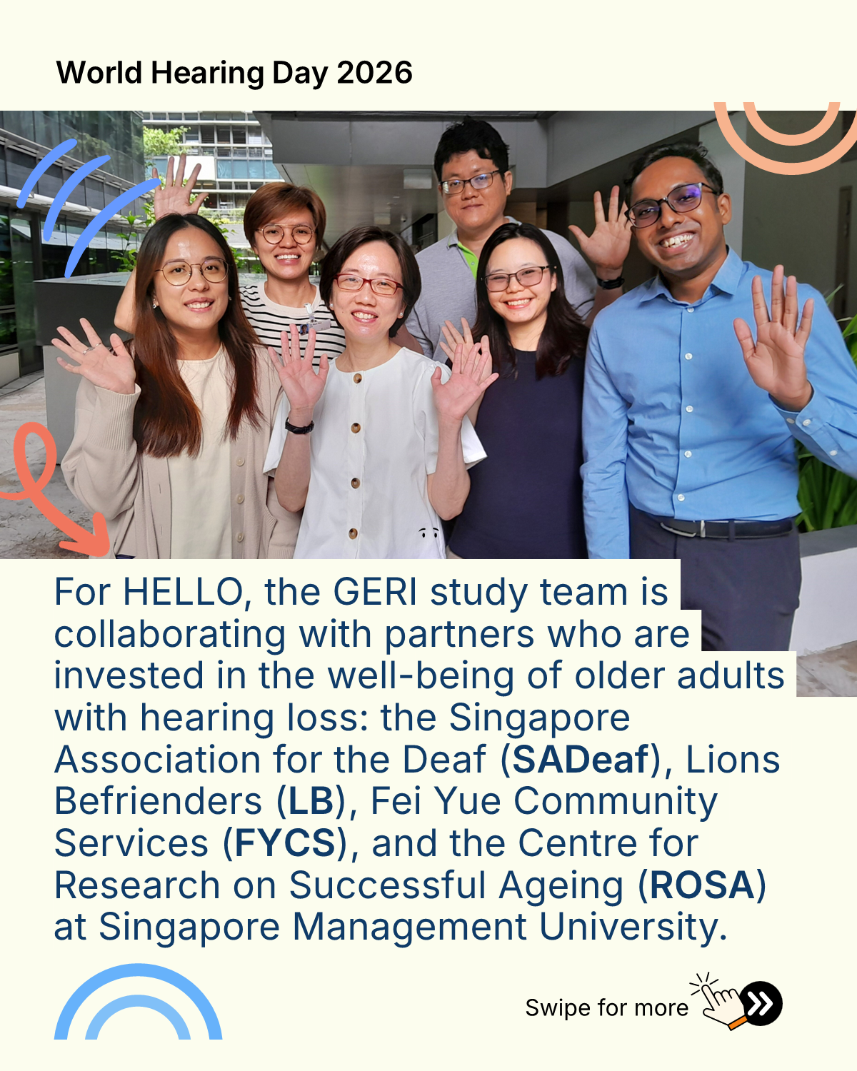 Hear from GERI's HELLO study team as they collaborate with community and academic partners with the aim of developing evidence-informed programmes that can enhance the social connectedness of older Singaporeans with hearing loss.
